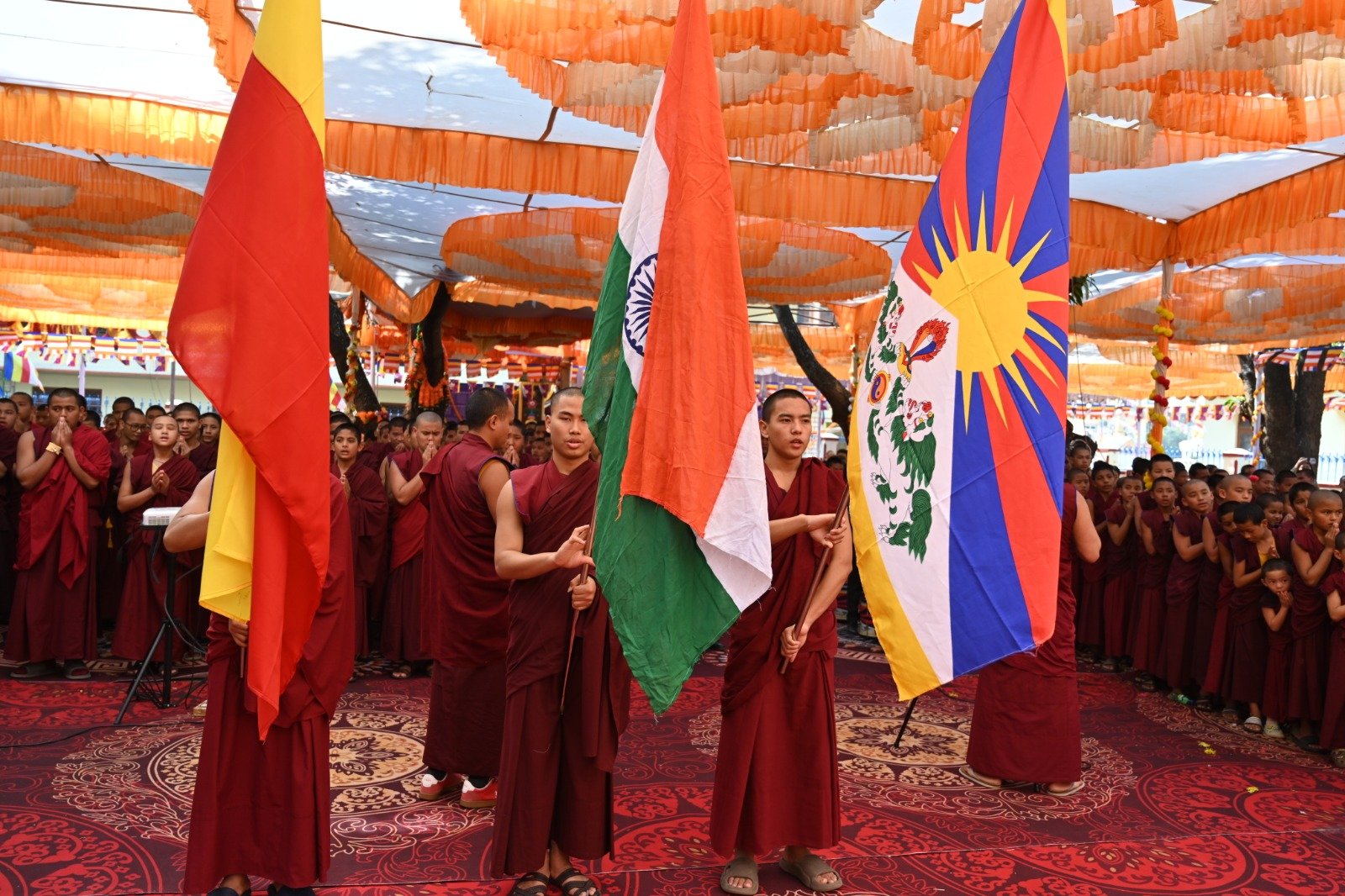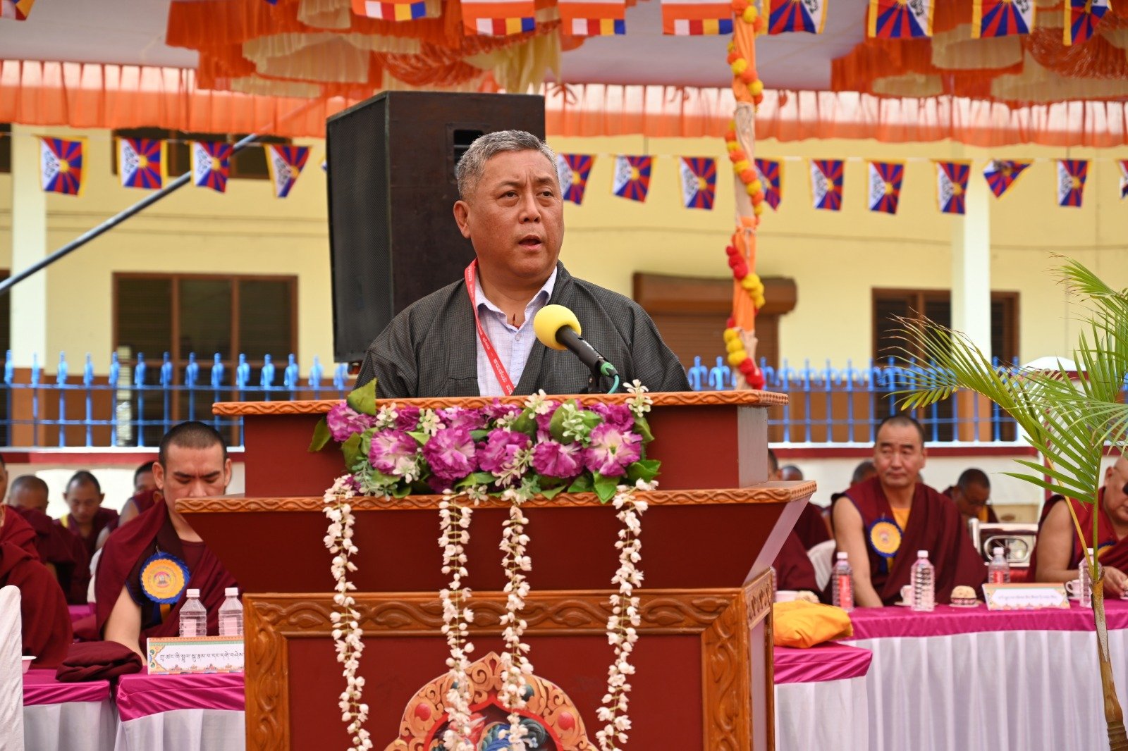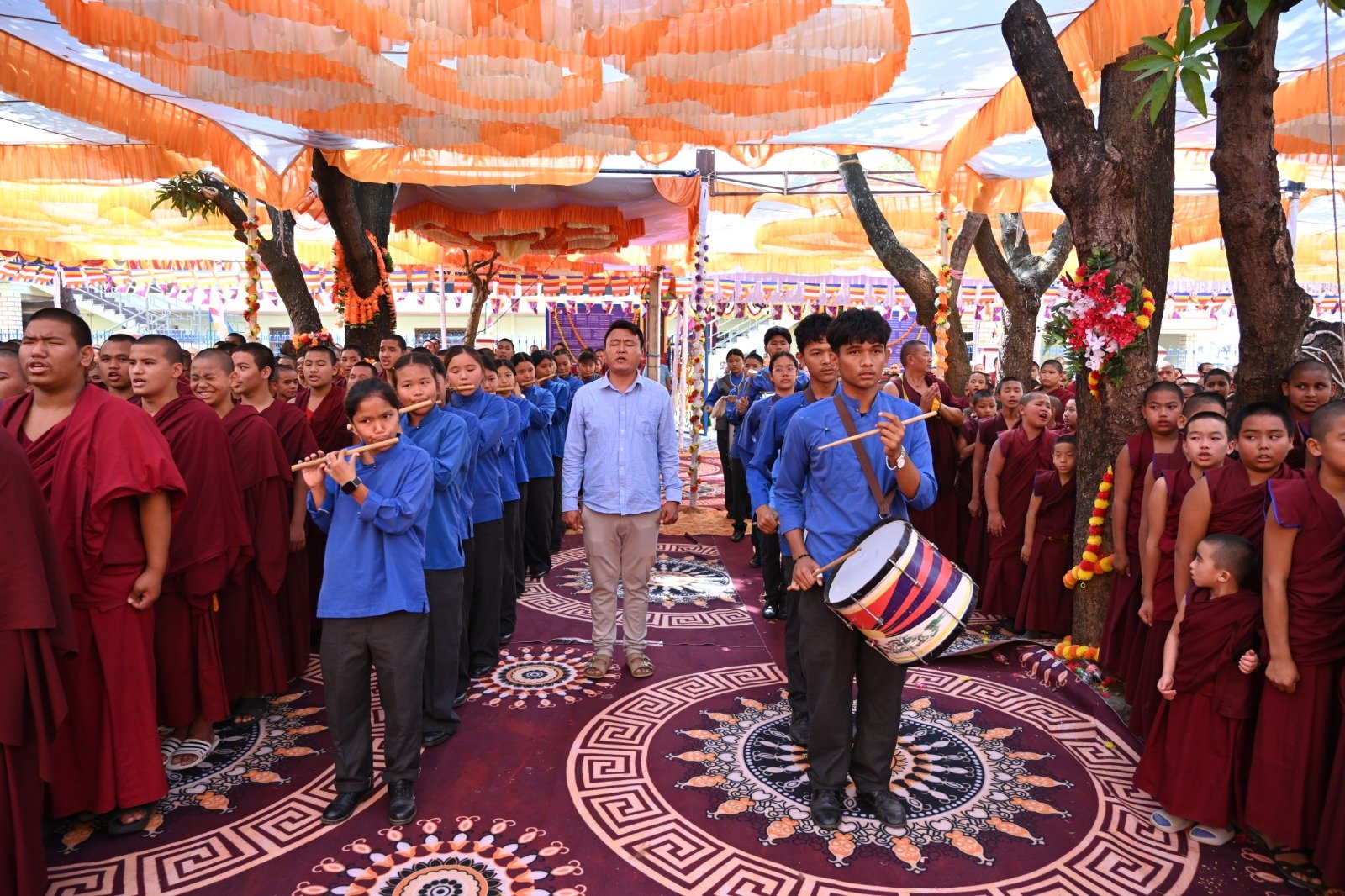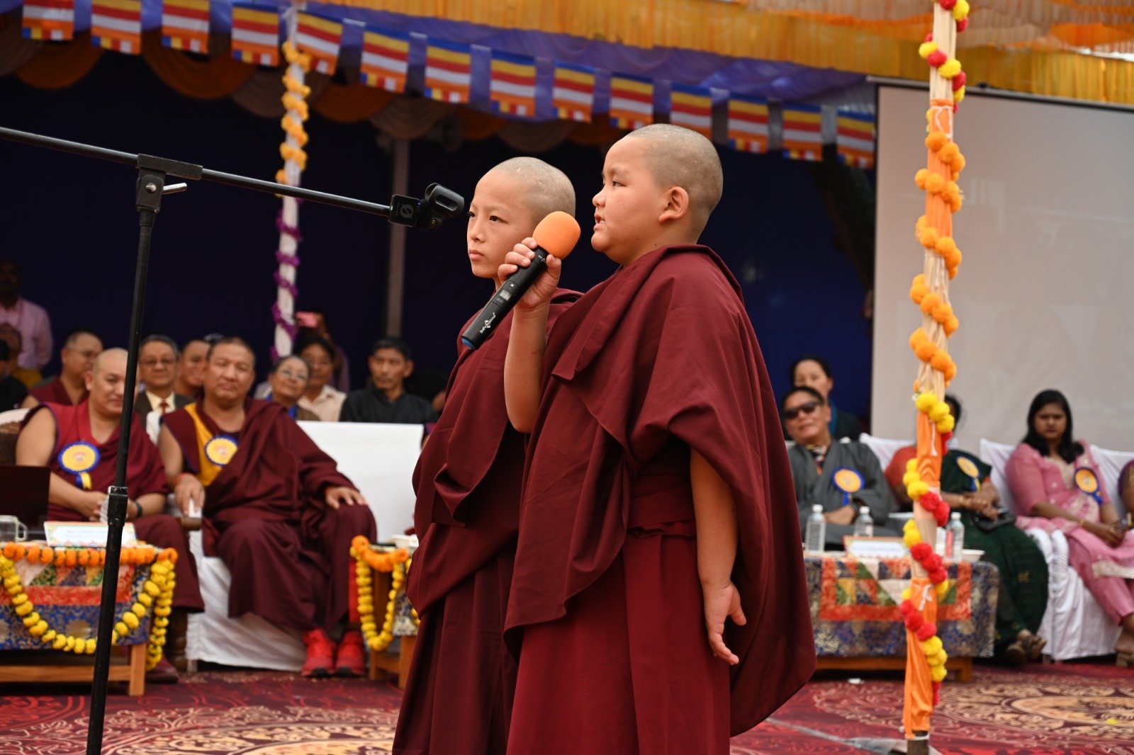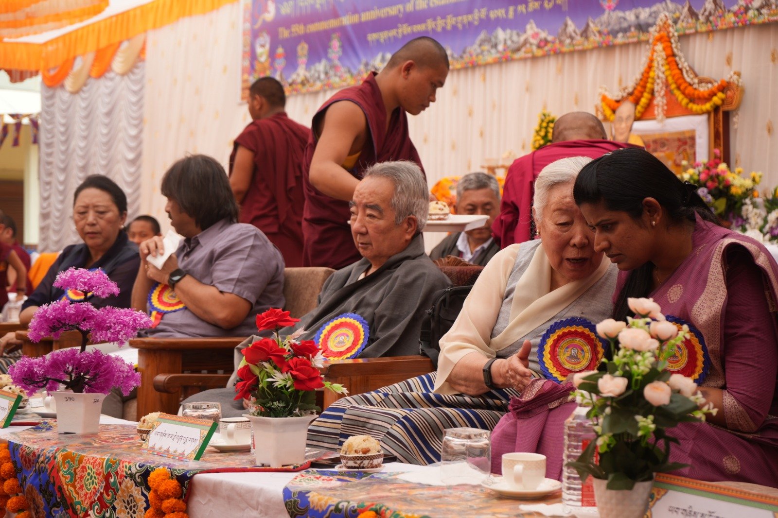 ༄༅། །ཕྱི་ལོ་ ༢༠༢༥ ཟླ་ ༡༢ ཚེས་ ༢༧ རེས་གཟའ་སྤེན་པ་མཆོག་ཏུ་དགེ་བའི་ཉིན་དགའ་ལྡན་ཤར་རྩེ་ཐོས་བསམ་ནོར་གླིང་སློབ་གྲྭར་༧སྐྱབས་གནས་མཁན་རིན་པོ་ཆེ་རྣམ་པ་དང་། རྒྱལ་སྲས་བླ་སྤྲུལ་རྣམ་པ། དགེ་བསྐོས་ལགས་དང་། དབུ་མཛད་ལགས། དགེ་བའི་བཤེས་གཉེན་རྣམ་པ། སྐུ་མགྲོན་གྱི་གཙོ་བོ་མངའ་སྡེའི་གཞུང་གཞི་རིམ་འོག་མའི་ཤེས་རིག་བློན་ཆེན་སྐུ་ཞབས་ Madu Bangarappa མཆོག དམིགས་བསལ་སྐུ་མགྲོན་སྐུའི་གཅུང་མོ་ཨ་མ་རྗེ་བཙུན་པདྨ་ལགས། དབུས་བོད་མིའི་སྒྲིག་འཛུགས་ཀྱི་བདེ་སྲུང་བཀའ་བློན་སྐུ་ངོ་རྒྱ་རི་སྒྲོལ་མ་ལགས། དཔལ་ལྡན་དགའ་ལྡན་ཕོ་བྲང་གི་སྐུ་ངོ་དྲུང་ཆེ་བློ་བཟང་སྦྱིན་པ་ལགས། བཀུར་འོས་སྤྱི་མཐུས་རྣམ་པ། དབུས་བོད་མིའི་སྒྲིག་འཛུགས་ཀྱི་ལྷོ་སྤྱི་སྐུ་ངོ་འཇིགས་མེད་ཚུལ་ཁྲིམས་མཆོག རྒྱ་གར་གྱི་གནད་ཡོད་མི་སྣ་ཁག་གཅིག་དང་། སློབ་གྲྭ་ཁག་གི་སློབ་སྤྱི་རྣམ་པ། གྲྭ་ཚང་གི་སྡེ་ཚན་ཁག་གི་འགན་འཛིན་རྣམ་པ། སློབ་དགེ་རྣམ་པ་དང་། སློབ་ཕྲུག་རྣམས་ལྷན་འཛོམས་ཐོག་དགའ་ལྡན་ཤར་རྩེ་ཐོས་བསམ་ནོར་གླིང་སློབ་གྲྭ་དབུ་བརྙེས་ནས་ལོ་ངོ་ ༥༥ འཁོར་བའི་དུས་དྲན་དང་། རྒྱ་གར་དབུས་འབྲིང་རིམ་ཤེས་ཡོན་ལྷན་ཚོགས་ཀྱི་ཁོངས་སུ་དེབ་སྐྱེལ་ལེགས་གྲུབ་ཟིན་པའི་རྟེན་འབྲེལ་མཛད་སྒོ་ཟབ་རྒྱས་ངང་སྲུང་བརྩི་ཞུས་པའི་བརྙན་པར་འགའ་སྤྱན་འབུལ་ཞུ།