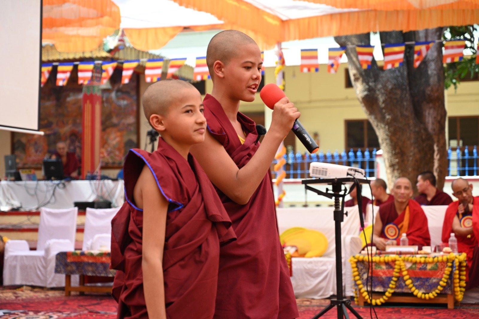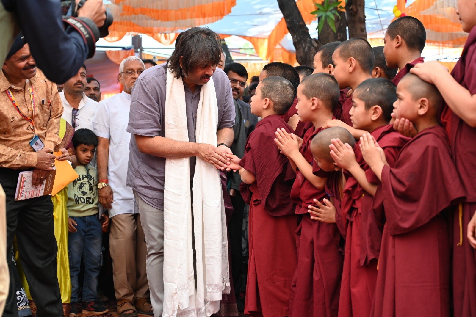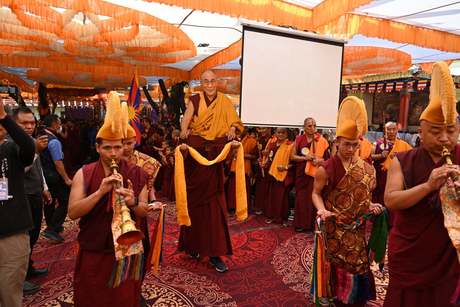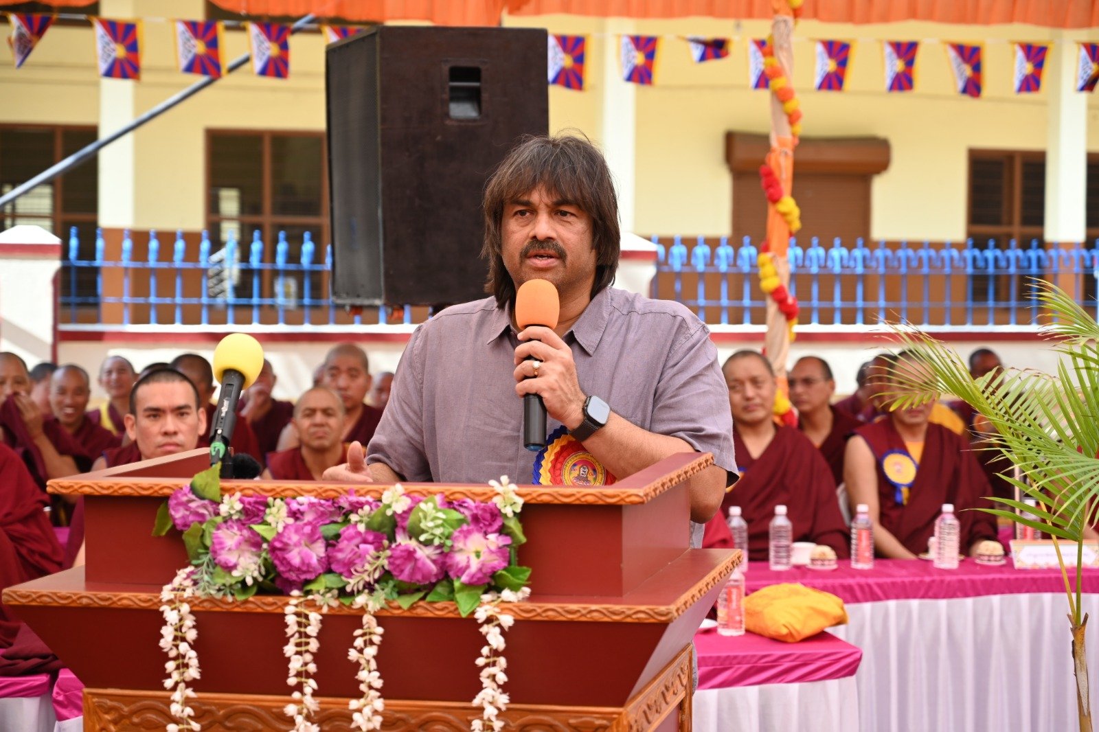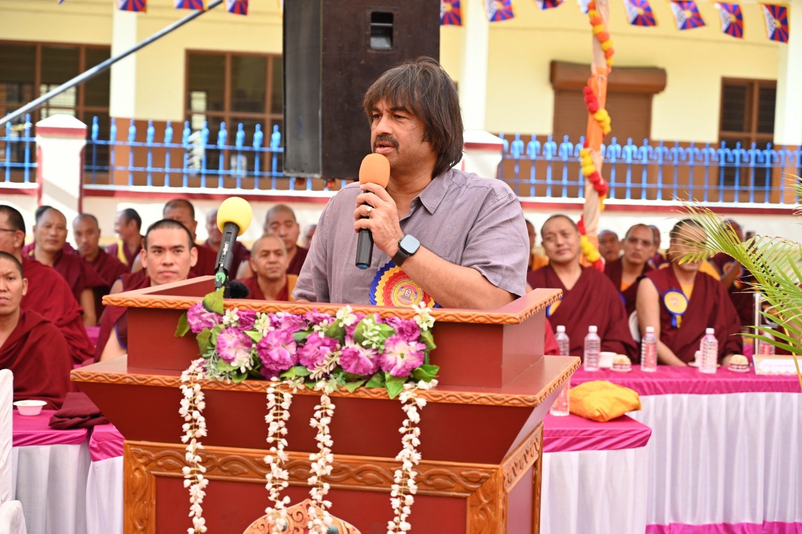 ༄༅། །ཕྱི་ལོ་ ༢༠༢༥ ཟླ་ ༡༢ ཚེས་ ༢༧ རེས་གཟའ་སྤེན་པ་མཆོག་ཏུ་དགེ་བའི་ཉིན་དགའ་ལྡན་ཤར་རྩེ་ཐོས་བསམ་ནོར་གླིང་སློབ་གྲྭར་༧སྐྱབས་གནས་མཁན་རིན་པོ་ཆེ་རྣམ་པ་དང་། རྒྱལ་སྲས་བླ་སྤྲུལ་རྣམ་པ། དགེ་བསྐོས་ལགས་དང་། དབུ་མཛད་ལགས། དགེ་བའི་བཤེས་གཉེན་རྣམ་པ། སྐུ་མགྲོན་གྱི་གཙོ་བོ་མངའ་སྡེའི་གཞུང་གཞི་རིམ་འོག་མའི་ཤེས་རིག་བློན་ཆེན་སྐུ་ཞབས་ Madu Bangarappa མཆོག དམིགས་བསལ་སྐུ་མགྲོན་སྐུའི་གཅུང་མོ་ཨ་མ་རྗེ་བཙུན་པདྨ་ལགས། དབུས་བོད་མིའི་སྒྲིག་འཛུགས་ཀྱི་བདེ་སྲུང་བཀའ་བློན་སྐུ་ངོ་རྒྱ་རི་སྒྲོལ་མ་ལགས། དཔལ་ལྡན་དགའ་ལྡན་ཕོ་བྲང་གི་སྐུ་ངོ་དྲུང་ཆེ་བློ་བཟང་སྦྱིན་པ་ལགས། བཀུར་འོས་སྤྱི་མཐུས་རྣམ་པ། དབུས་བོད་མིའི་སྒྲིག་འཛུགས་ཀྱི་ལྷོ་སྤྱི་སྐུ་ངོ་འཇིགས་མེད་ཚུལ་ཁྲིམས་མཆོག རྒྱ་གར་གྱི་གནད་ཡོད་མི་སྣ་ཁག་གཅིག་དང་། སློབ་གྲྭ་ཁག་གི་སློབ་སྤྱི་རྣམ་པ། གྲྭ་ཚང་གི་སྡེ་ཚན་ཁག་གི་འགན་འཛིན་རྣམ་པ། སློབ་དགེ་རྣམ་པ་དང་། སློབ་ཕྲུག་རྣམས་ལྷན་འཛོམས་ཐོག་དགའ་ལྡན་ཤར་རྩེ་ཐོས་བསམ་ནོར་གླིང་སློབ་གྲྭ་དབུ་བརྙེས་ནས་ལོ་ངོ་ ༥༥ འཁོར་བའི་དུས་དྲན་དང་། རྒྱ་གར་དབུས་འབྲིང་རིམ་ཤེས་ཡོན་ལྷན་ཚོགས་ཀྱི་ཁོངས་སུ་དེབ་སྐྱེལ་ལེགས་གྲུབ་ཟིན་པའི་རྟེན་འབྲེལ་མཛད་སྒོ་ཟབ་རྒྱས་ངང་སྲུང་བརྩི་ཞུས་པའི་བརྙན་པར་འགའ་སྤྱན་འབུལ་ཞུ།