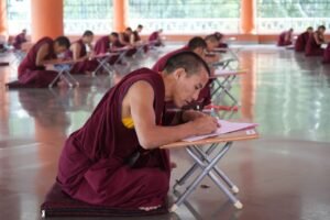Today, on 30th August 2025, the Half Yearly exam results of Gaden Shartse Monastery School were announced in the respected presence of the three chief instructors and the entire teaching staff.The principal provided guidance regarding the exams and results, followed by our Abbot, who appreciated the sincere efforts of the students and encouraged all to strive for even better results. The results for all the classes were declared, and the top five students from each classes were awarded prizes by the Educational committee and Phuntsok Choeling Lhadrang for their excellent performance.